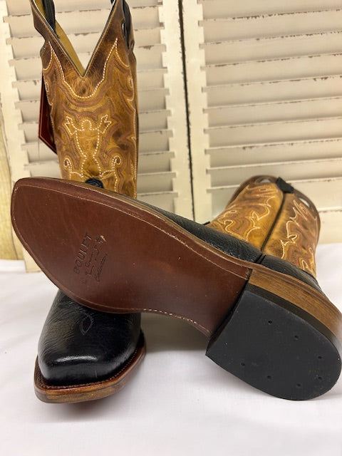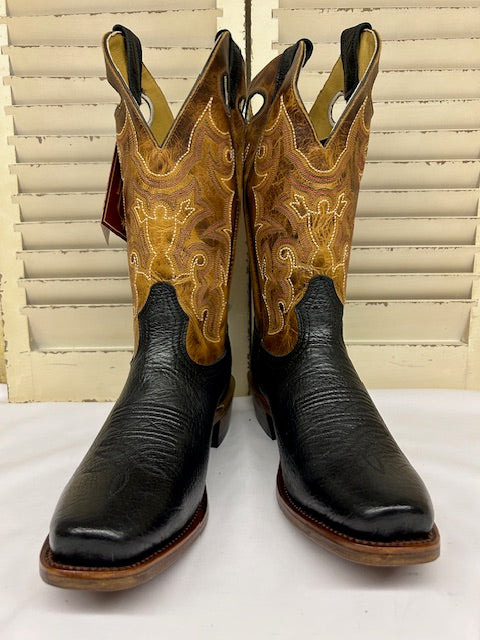 Blue Belly Caiman with black buffalo calf, butter soft uppers.One piece vamp, one piece counter.Caiman pull loops and collar.Shaft: 13” Toe: 4L Heel: 1 ½” Width: DThe best choice for the ultimate dress boot!Sleek and stylish with your best jeans or your favourite suit!This product cannot be shipped outside of Canada.Handmade in Mexico
